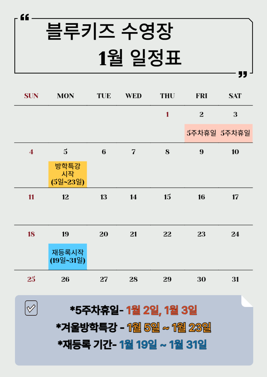 * 1¿ù 2ÀÏ (±Ý), 1¿ù 3ÀÏ (Åä) ¼ö¿µÀå ÈÞ¹«
