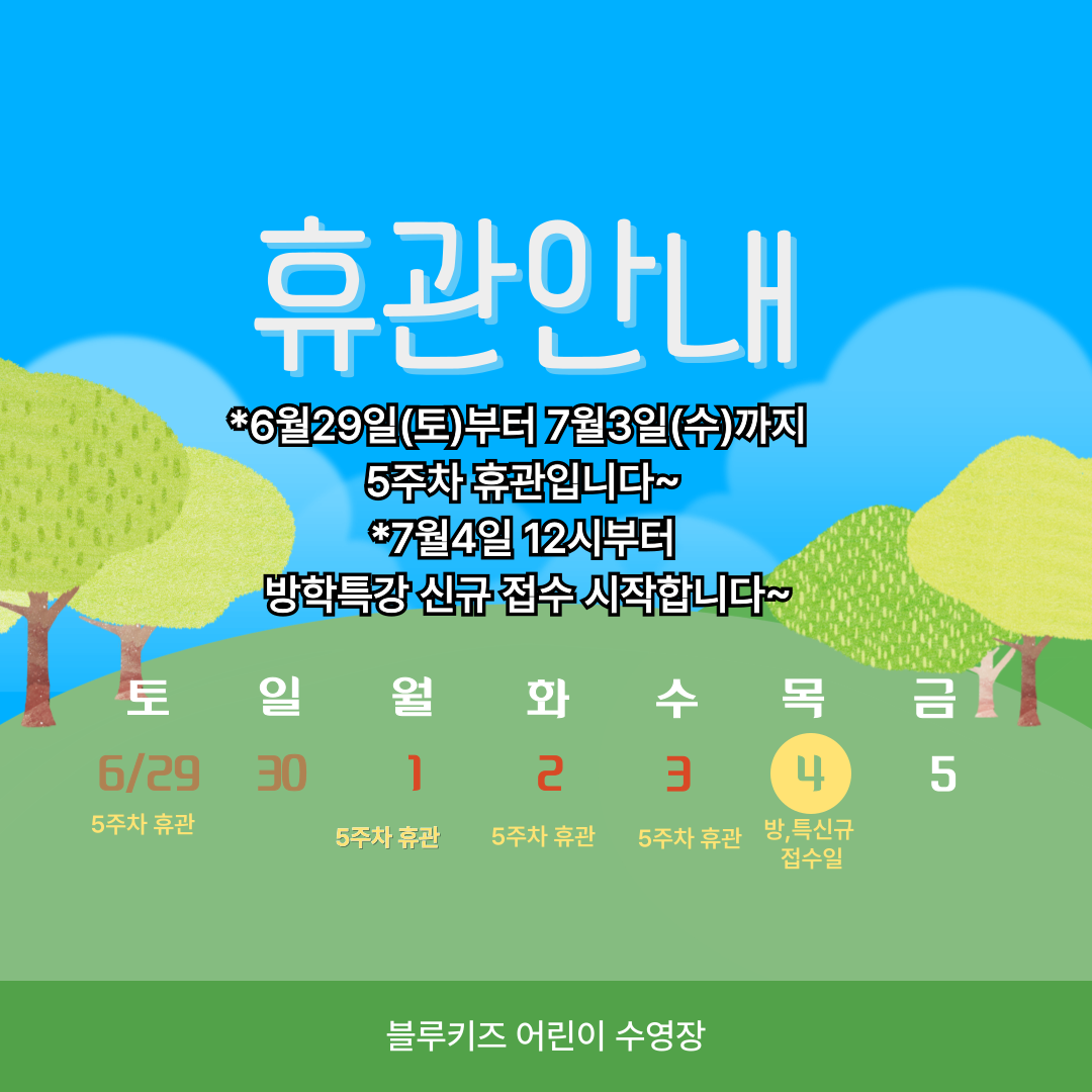 24³â 6¿ù 7¿ù ¼ö¿µÀå 5ÁÖÂ÷ Á¤±â ÈÞ¹« ¾È³»