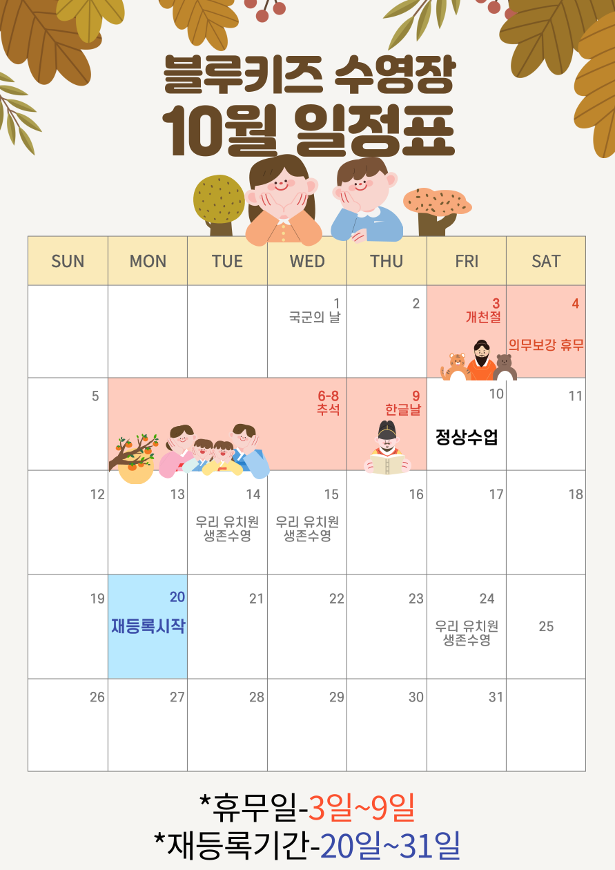 10¿ù 10ÀÏ (±Ý) ¼ö¿µÀå Á¤»ó ¿î¿µ ÇÕ´Ï´Ù!